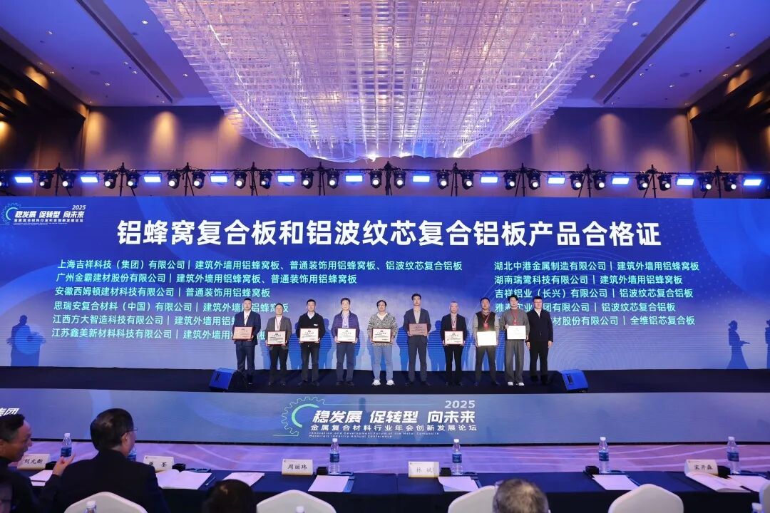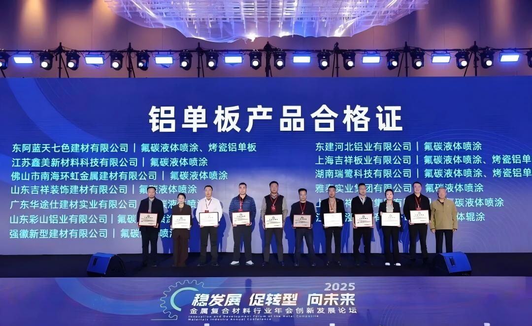 雅泰實業(yè)集團參加本次年會,會上,集團的氟碳液體噴涂鋁單板、不燃級鋁復(fù)合板、鋁波紋芯復(fù)合鋁板等產(chǎn)品分別榮獲“新國標,高質(zhì)量”產(chǎn)品合格證。