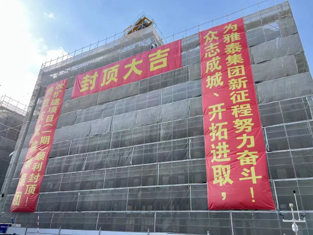 2022年12月18日,雅泰迎來23周歲生日之際,聯(lián)東U谷·雅泰國際企業(yè)港項目成功完成主體封頂,集團大樓上掛滿了慶賀的條幅,項目相關(guān)領(lǐng)導(dǎo)、單位共襄盛舉。