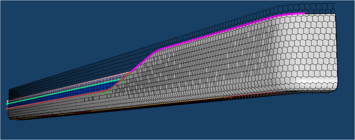 南裙樓船頭造型內(nèi)部鋼結(jié)構(gòu)均有扭轉(zhuǎn),要求拐角幕墻呈現(xiàn)雙曲面效果;屋檐幕墻設(shè)計圍繞龍鱗造型,分解為單片“六邊形”元素展開,拐角弧度造型對鋁板制造及安裝工藝要求極高。